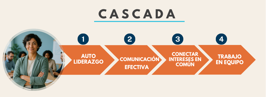 Trabajamos con nuestra propia metodología llamada CASCADA, basada en el Coaching y la Psicología, nuestro objetivo es que todo lo que aprendes e interiorizas como líder, elijas llevarlo conscientemente, a tu vida y a tu equipo: